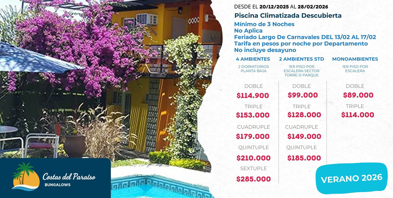 Bungalows Costas del Paraiso en Colón, Entre Rios mail