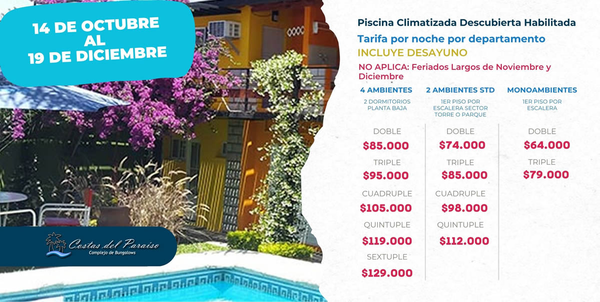 Bungalows Costas del Paraiso en Colón, Entre Rios mail